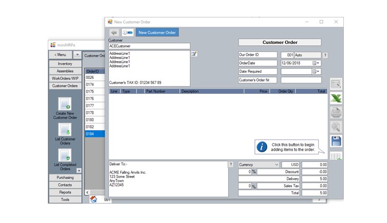 The picture also shows that you can drag any 'tabbed' window out of the main window and position anywhere on your display. So in the above example the customer order is now in its own window. This allows you to actually see and work on multiple task windows side by side at the same time rather than having them all tabbed one on top of the other. | |